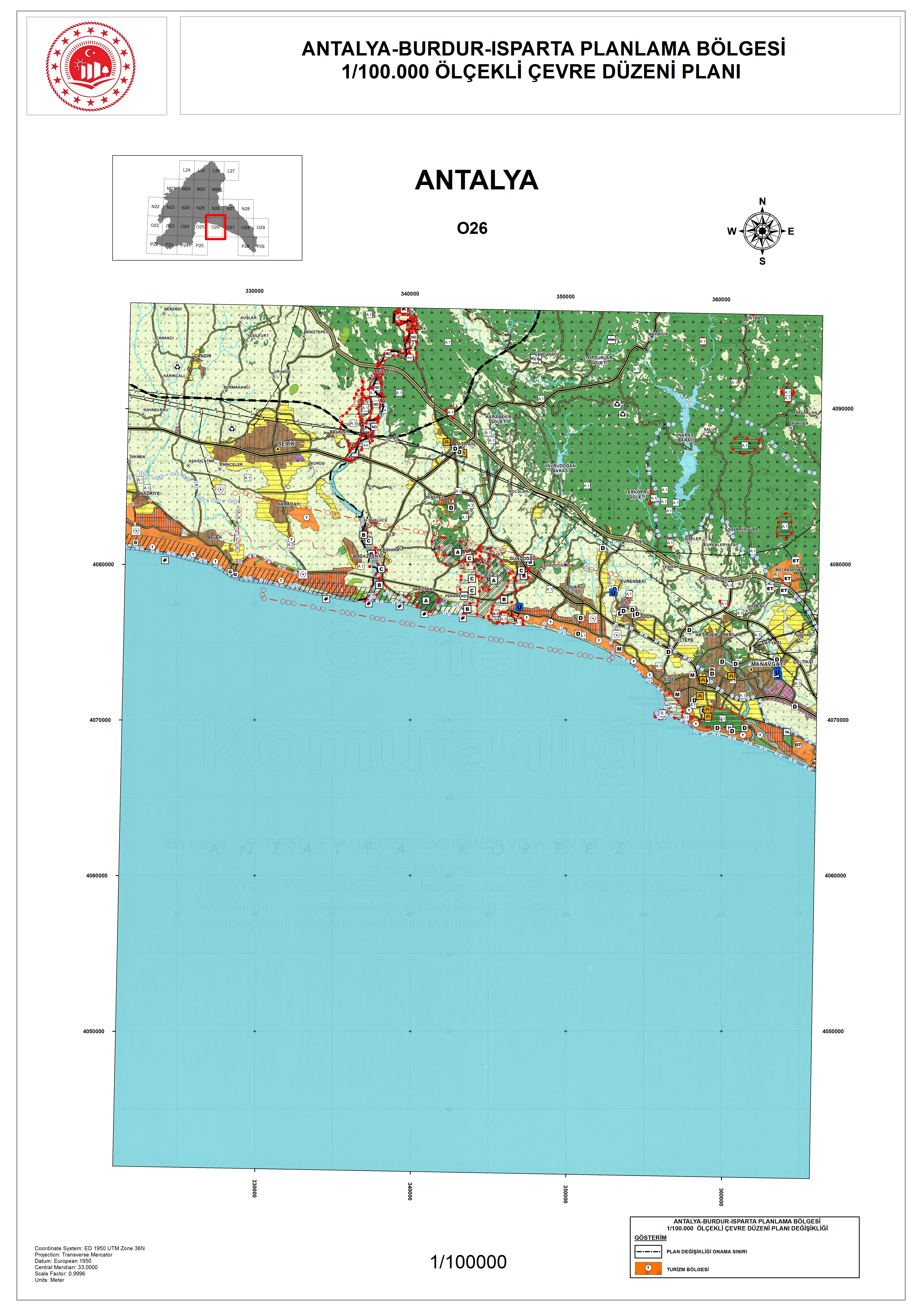 T.C. Çevre, Şehircilik ve İklim Değişikliği Bakanlığı’nca 06.10.2022 tarihinde onaylanan Antalya –Burdur-Isparta Planlama Bölgesi 1/100.000 ölçekli Çevre Düzeni Planı Değişikliği 31.10.2022 tarihinde İl Müdürlüğü İlan yerinde, Antalya Çevre Şehircilik ve İklim Değişikliği İl Müdürlüğünce askıya çıkarılmıştır.
