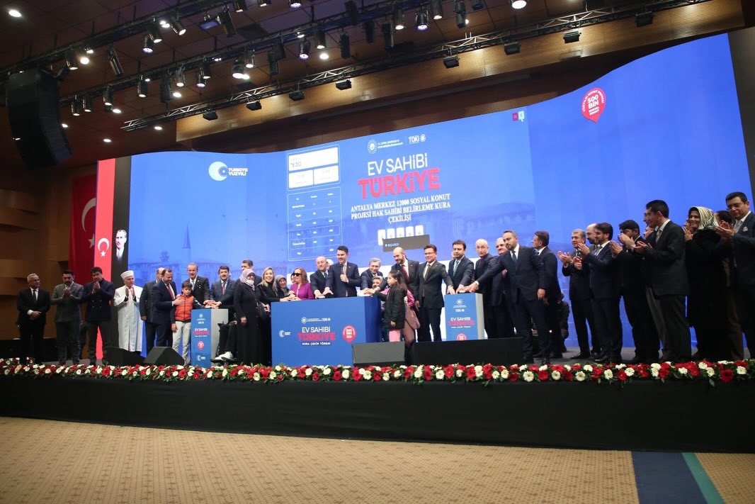 Yüzyılın Konut Projesi kapsamında Antalya'mızda düzenlenen Ev Sahibi Türkiye Kura Çekim Töreni'nde, İlimizde yapılacak 13.213 konutun kura çekimi Çevre, Şehircilik ve İklim Değişikliği Bakanımız Sayın Murat Kurum'un teşrifleriyle Sayın Valimiz, Bakan Yardımcılarımız, Milletvekillerimiz, Genel Müdürlerimiz, İl Müdürümüz, İl Başkanlarımız ve çok kıymetli vatandaşlarımızın katılımları ile gerçekleştirildi.